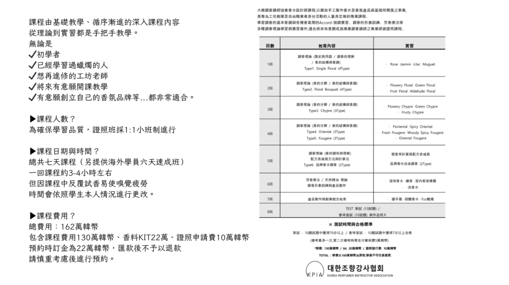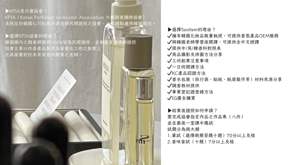 KPIA大韓調香講師協會 調香師資證照課程